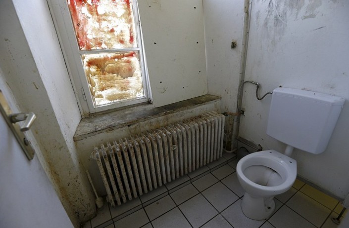 Туалет в общежитии для беженцев в Аугсбурге (Германия).