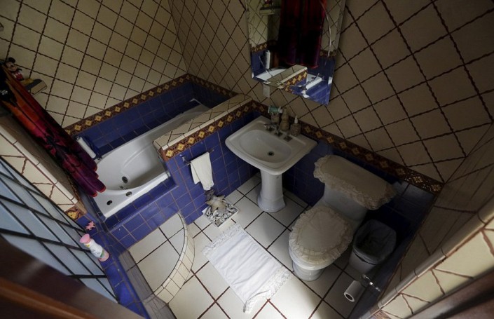 Украшенный кружевами унитаз в частном доме в Мехико (Мексика).