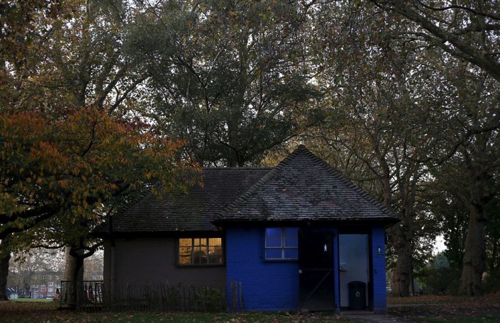 Общественный туалет с черепичной крышей в восточном Лондоне.