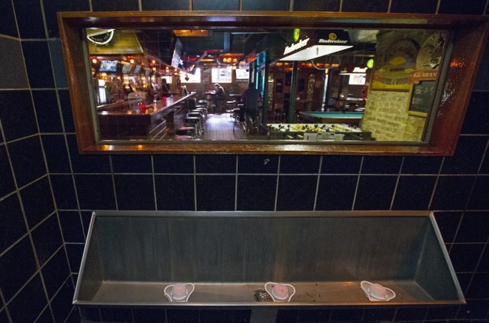 Писсуар с односторонним стеклом в ресторане в Чикаго (штат Иллинойс, США).