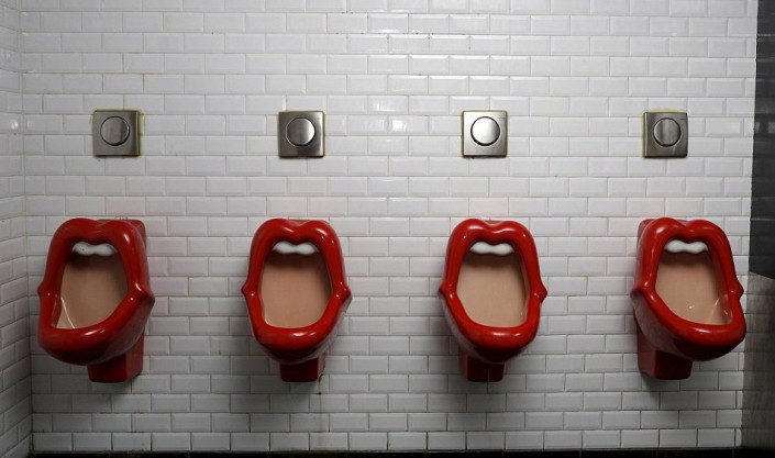 Писсуары в стиле Rolling Stones в баре в Париже.