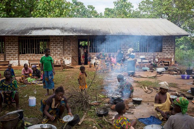 Около 4800 христиан, бежавших из-за столкновений между группировками "Селека" и "Анти-Балака", нашли пристанище возле католической миссии в Гримари.
