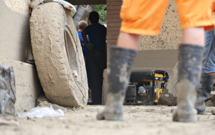 Помещение около четырех квадратных метров было полностью затоплено илом и грязью. Хозяин рассказывал, что в подвале хранилось много разных вещей и соленья, которые его семья делала на зиму. Мы и не рассчитывали, что что-то могло уцелеть.