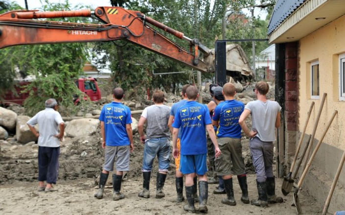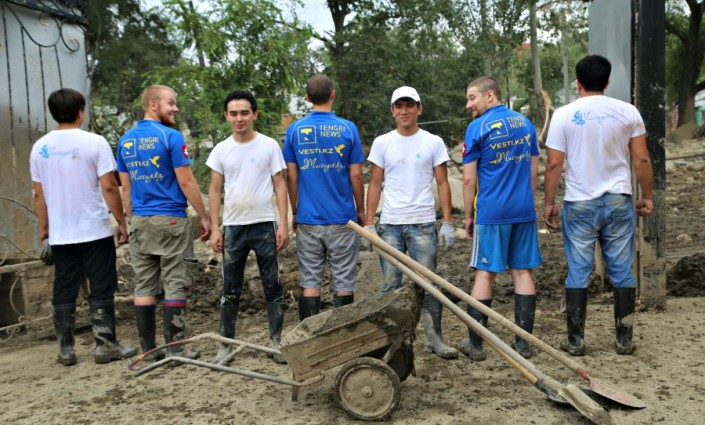 Журналисты и сотрудники сайтов Tengrinews.kz, Vesti.kz, Massaget.kz и Tengri FM также решили откликнуться на зов о помощи и приехали потрудиться в пострадавший район. В штабе нам выдали необходимые инструменты и направили в один из сильно пострадавших домов.