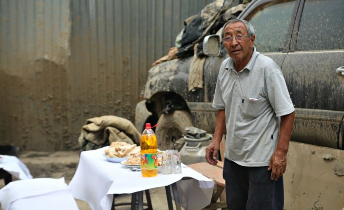 Когда начался сель, семья пожилого местного жителя, в чей дом мы пришли помогать, успела выбежать на пригорок. Все, что им оставалось делать, - это смотреть на то, как огромное количество воды с грязью и мусором затапливает их двор, подвал дома, рушит забор и деформирует автомобили.
