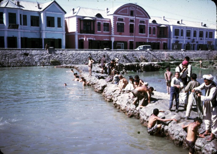Люди купаются в реке Кабул.