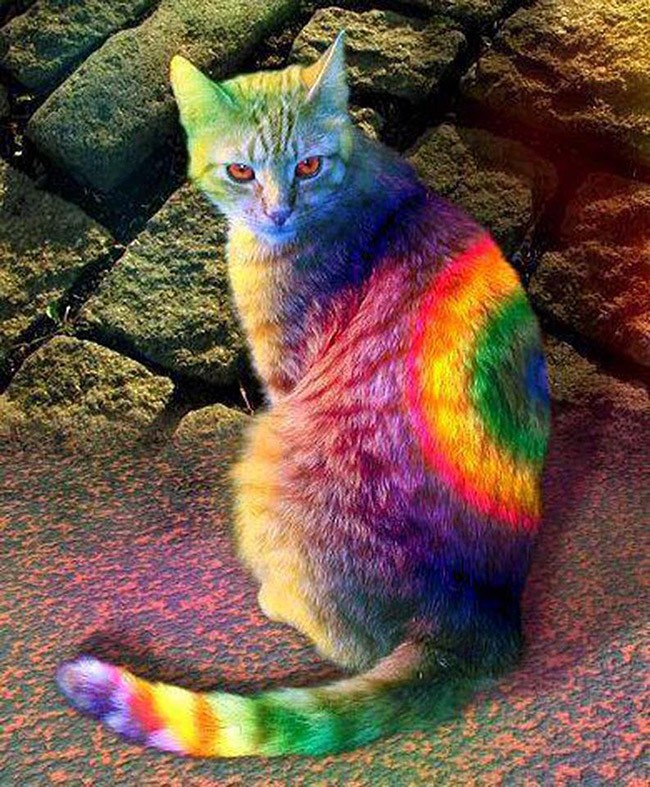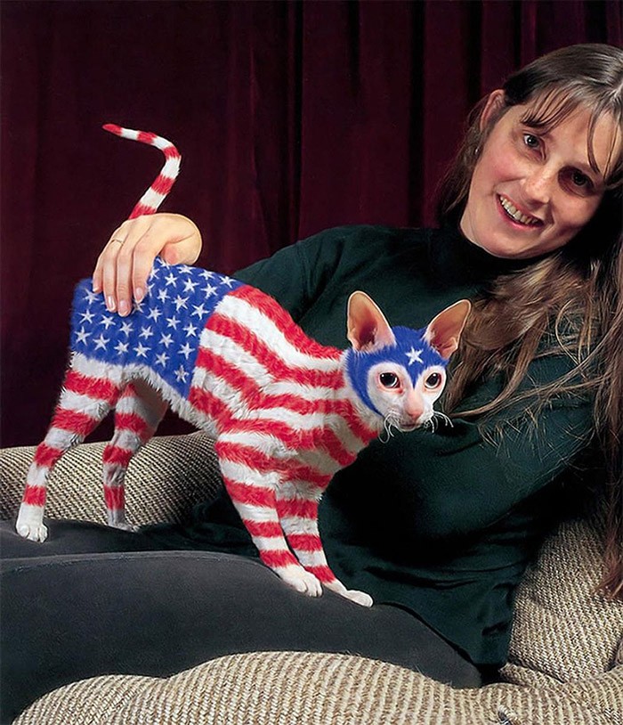 Если вам не нравится цвет вашей кошки, просто покрасьте ее. Такое смелое заявление сделали художница Хизер Буш и писатель Бертон Сильвер, выпустив в далеком 1994 году совместную книгу с фотографиями раскрашенных кошек. Идея вызвала бурную реакцию общественности, а иллюстрации из книги до сих пор гуляют по Сети, вызывая споры и самую разную реакцию - от возмущения до умиления. Позднее авторы скандальной книжки признались, что ни одно животное на фотографиях не пострадало: всю работу по их раскрашиванию авторы проделали в фотошопе.