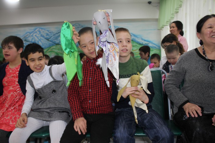 Этот небольшой концерт стал частью инициативы, зародившейся в селе Аса (Жамбылская область). Один из клубов ЮНЕСКО - детско-юношеский центр "Айналайын" - приехал в Алматы, чтобы раздать воспитанникам специального учреждения подарки, сделанные вручную.