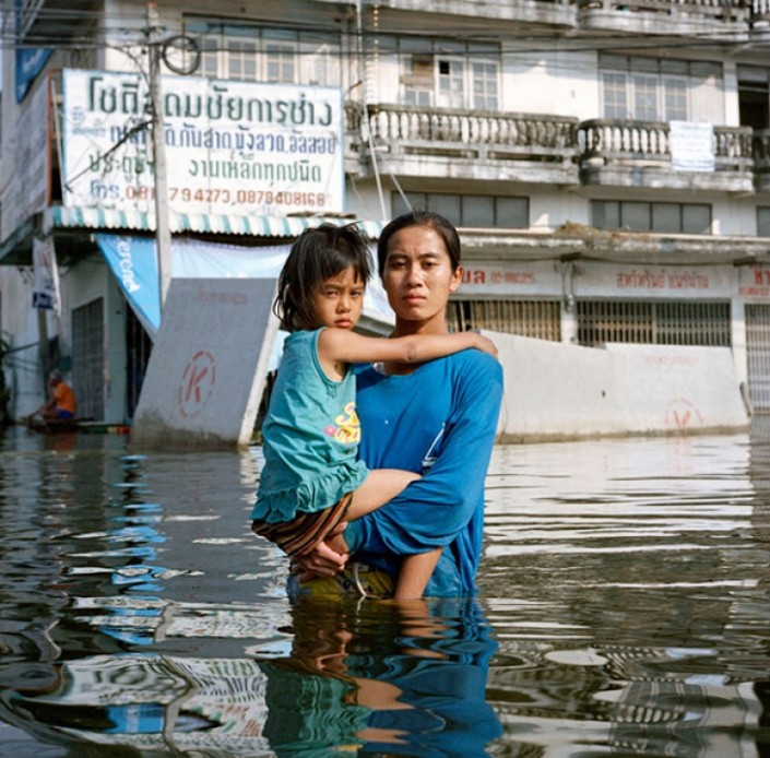Таиланд, 2011. Городок затопило, но женщина все равно идет в магазин, чтобы купить продукты для своей семьи.