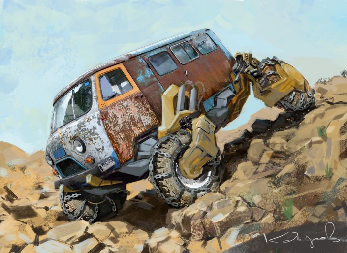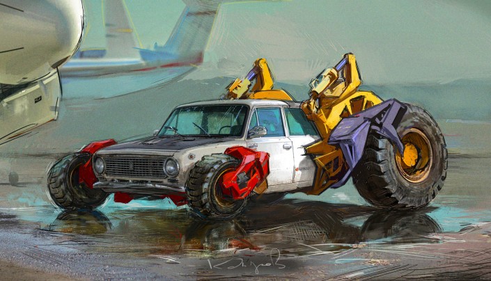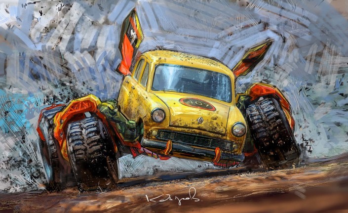 Казахстанский художник Данияр Кдыров переместил культовые автомобили советского автопрома в мир, схожий со вселенной "Безумного Макса". Алматинец работает дизайнером в крупном рекламном агентстве, а в свободное время он занят превращением советских автомобилей в апокалиптических трансформеров.