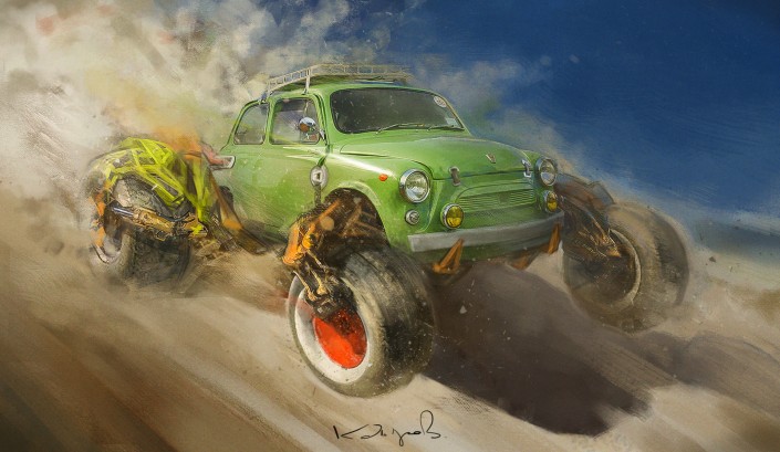 "Копейка" и "Запорожец" в стиле "Безумного Макса" от казахстанского художника Изображения с сайта Artstation.com