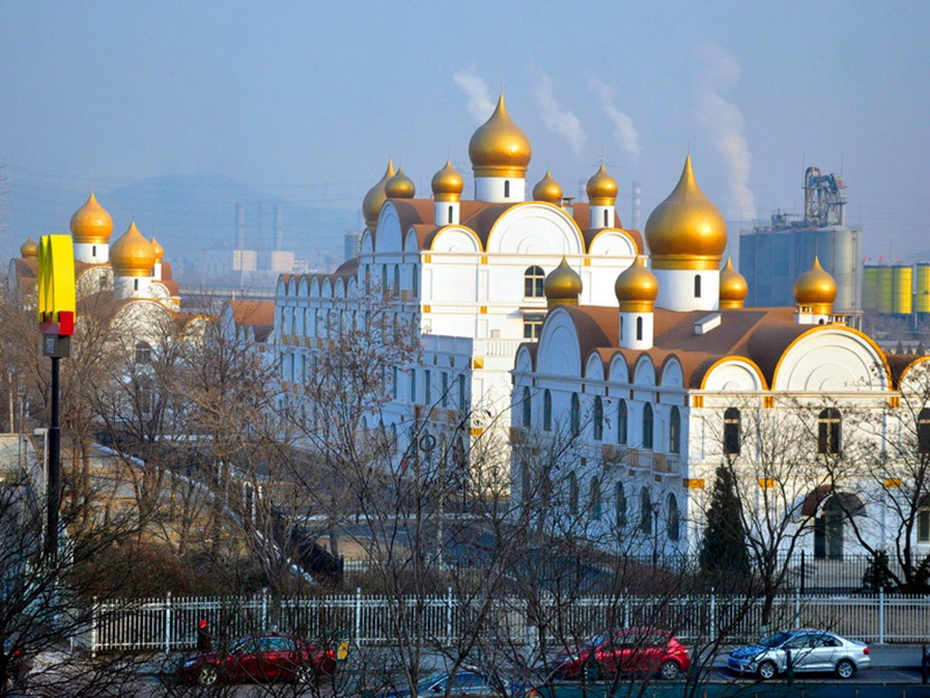 Административные здания в пекинском районе Мэньтоугоу напоминают Успенский собор в Москве.