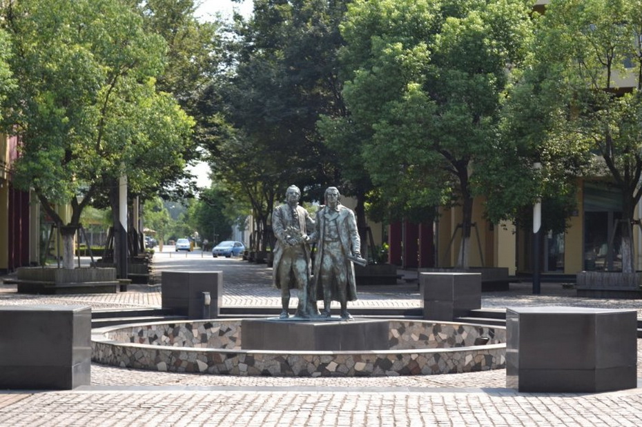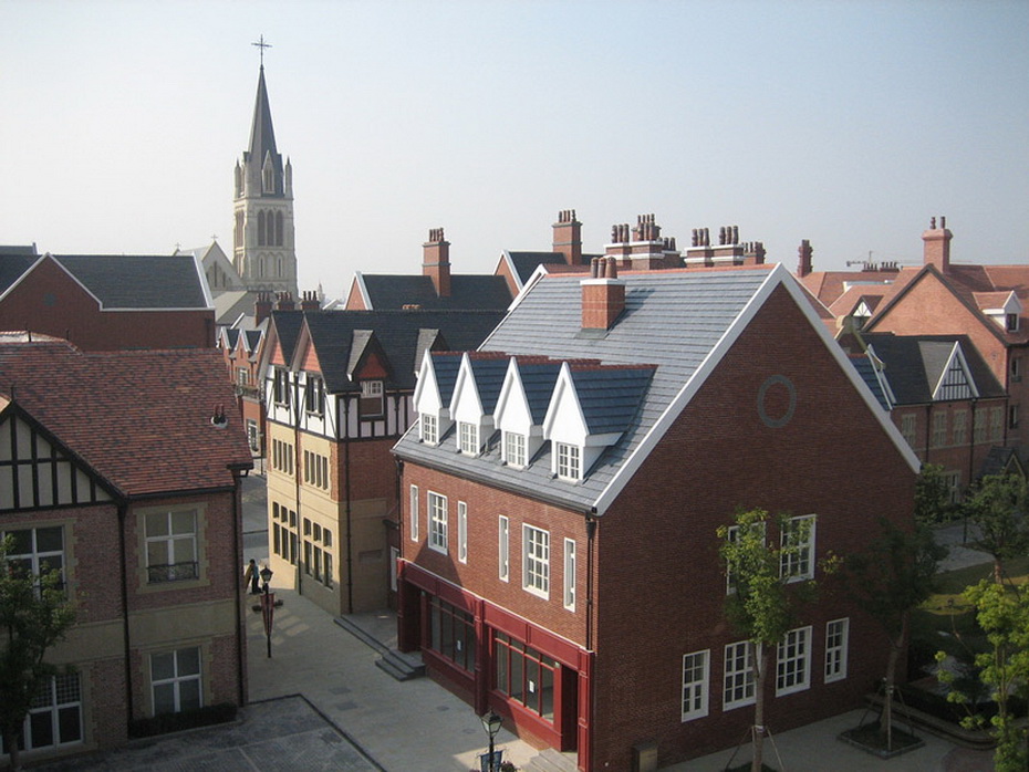 С 2001 года в окрестностях Шанхая претворяется в жизнь проект One City, Nine Towns, в рамках которого здесь строят жилые районы, стилизованные под различные города мира. "Британский" квартал Thames Town украшен гвардейцами, красными телефонными будками и памятником Черчиллю.