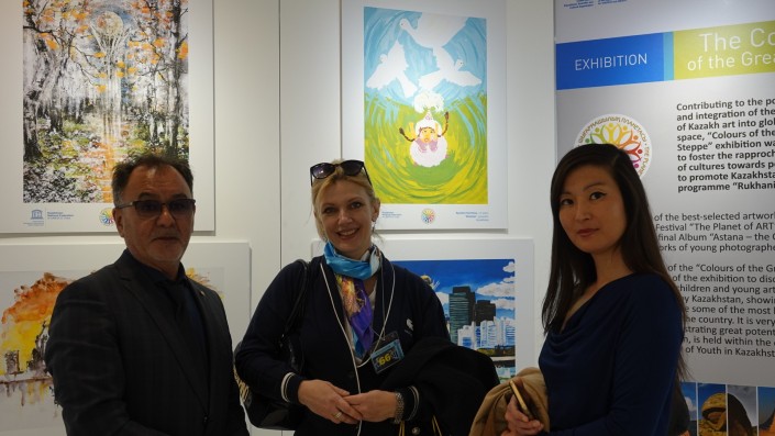 В свою очередь постоянный представитель Республики Казахстан при ЮНЕСКО, чрезвычайный и полномочный посол РК во Франции Жан Галиев, обращаясь к участникам торжественной церемонии открытия выставки, сказал: "Подобного рода мероприятия вносят значительный вклад в популяризацию и продвижение положительного имиджа Казахстана на важной международной площадке, наглядно демонстрируя творческий потенциал нашей молодежи и ее понимание непреходящего значения богатого природного и историко-культурного наследия нашей страны. Поддержка молодежи, как одна из основ нашей социальной политики, неизменно остается приоритетом для всех государственных органов, включая отечественную дипломатию".