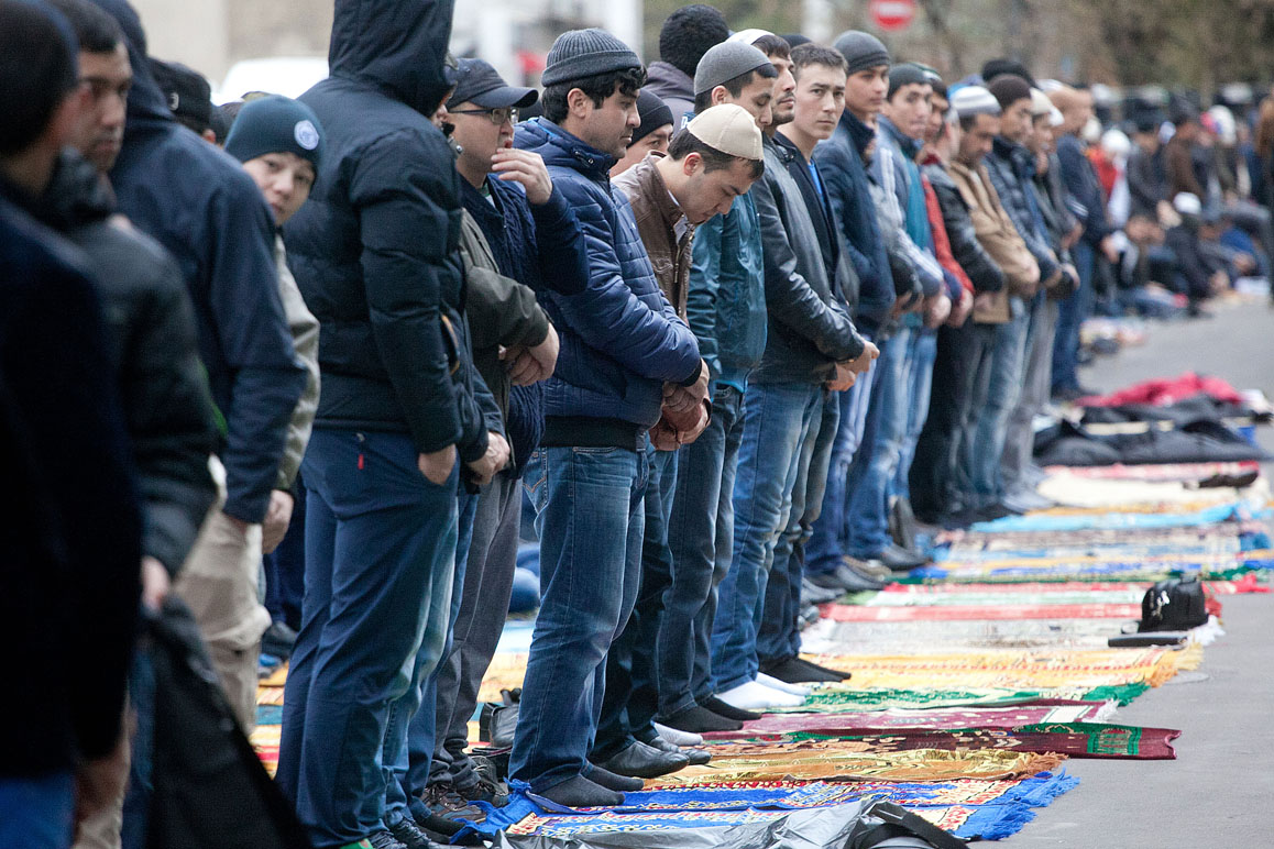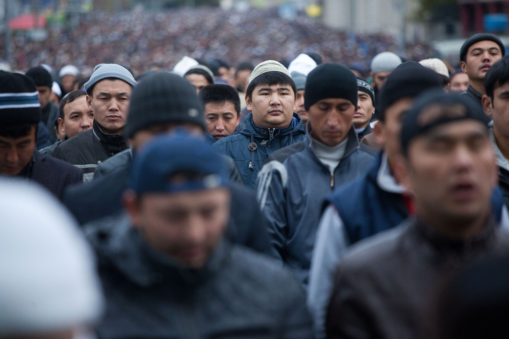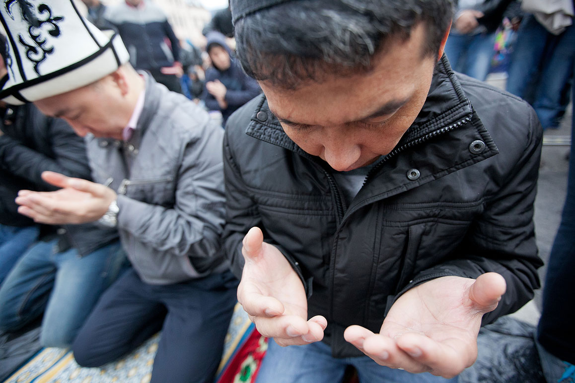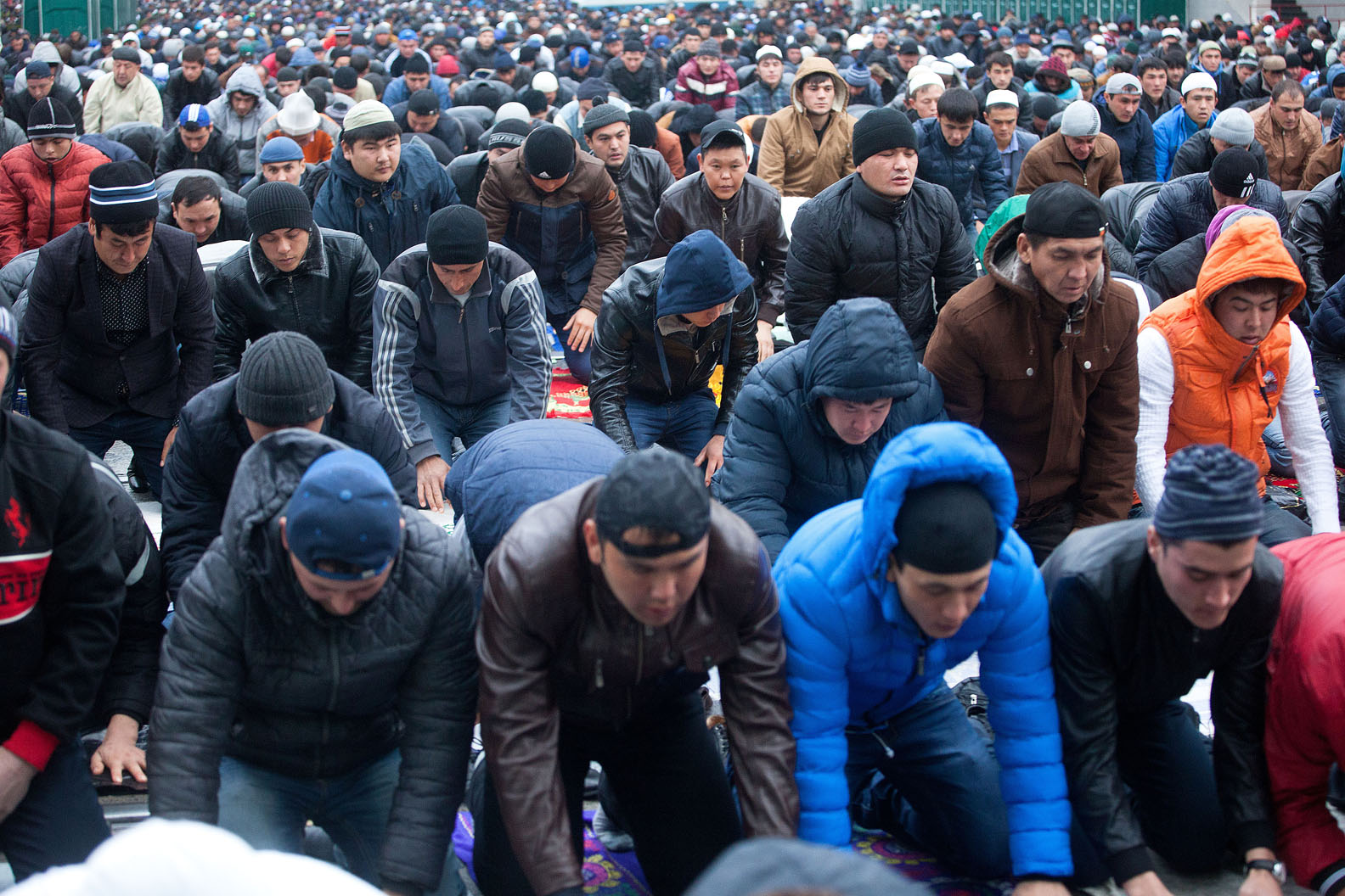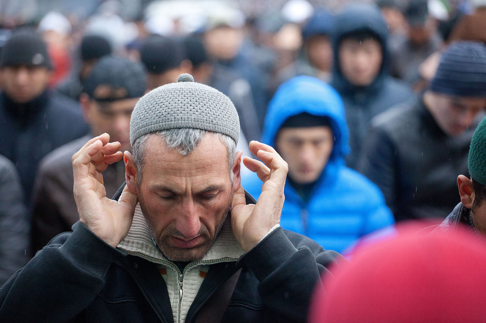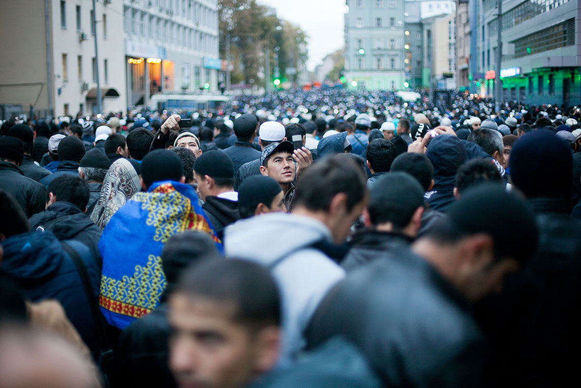 В Москве мусульманский праздник собрал около 130 тысяч человек. Молитвы состоялись в пяти действующих мечетях и на трех дополнительных площадках, выделенных мэрией. Больше всего людей пришли к Соборной мечети - примерно 50 тысяч человек. О том, как это было, - в фоторепортаже Bigpicture.ru