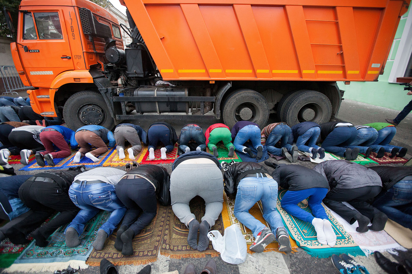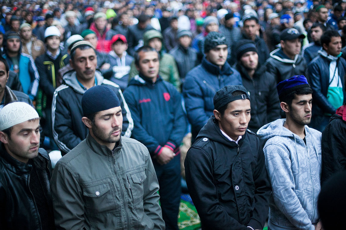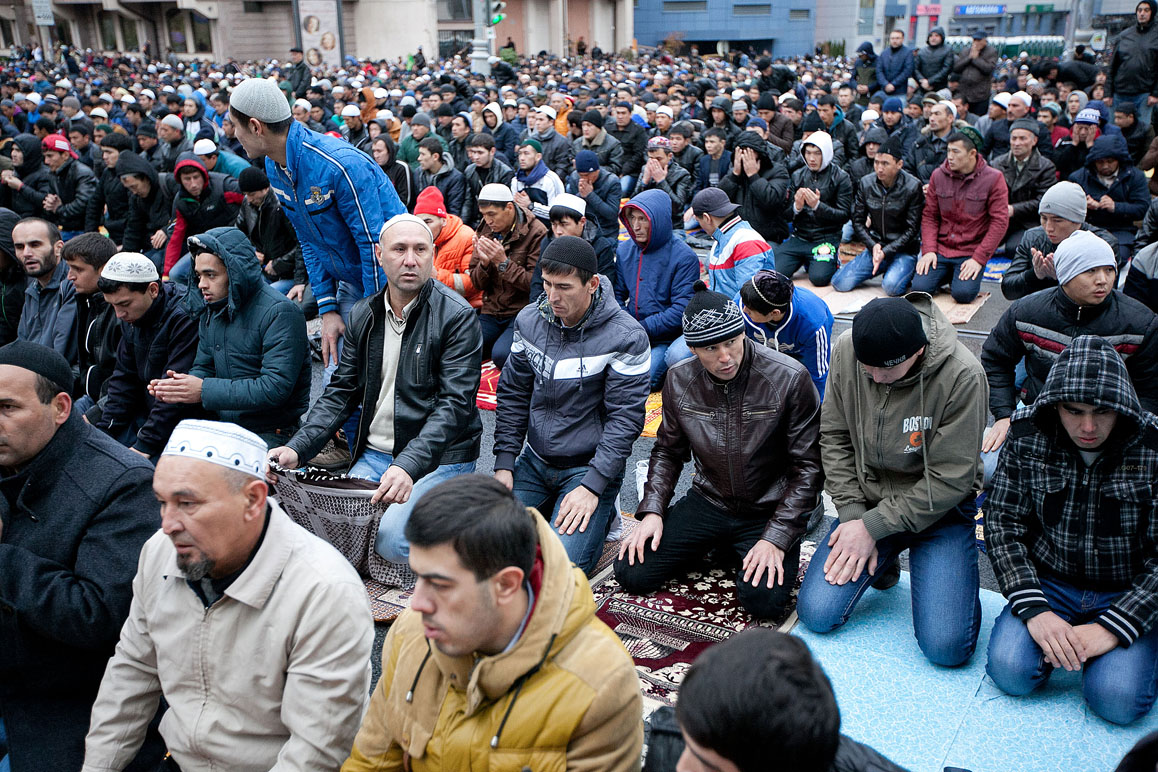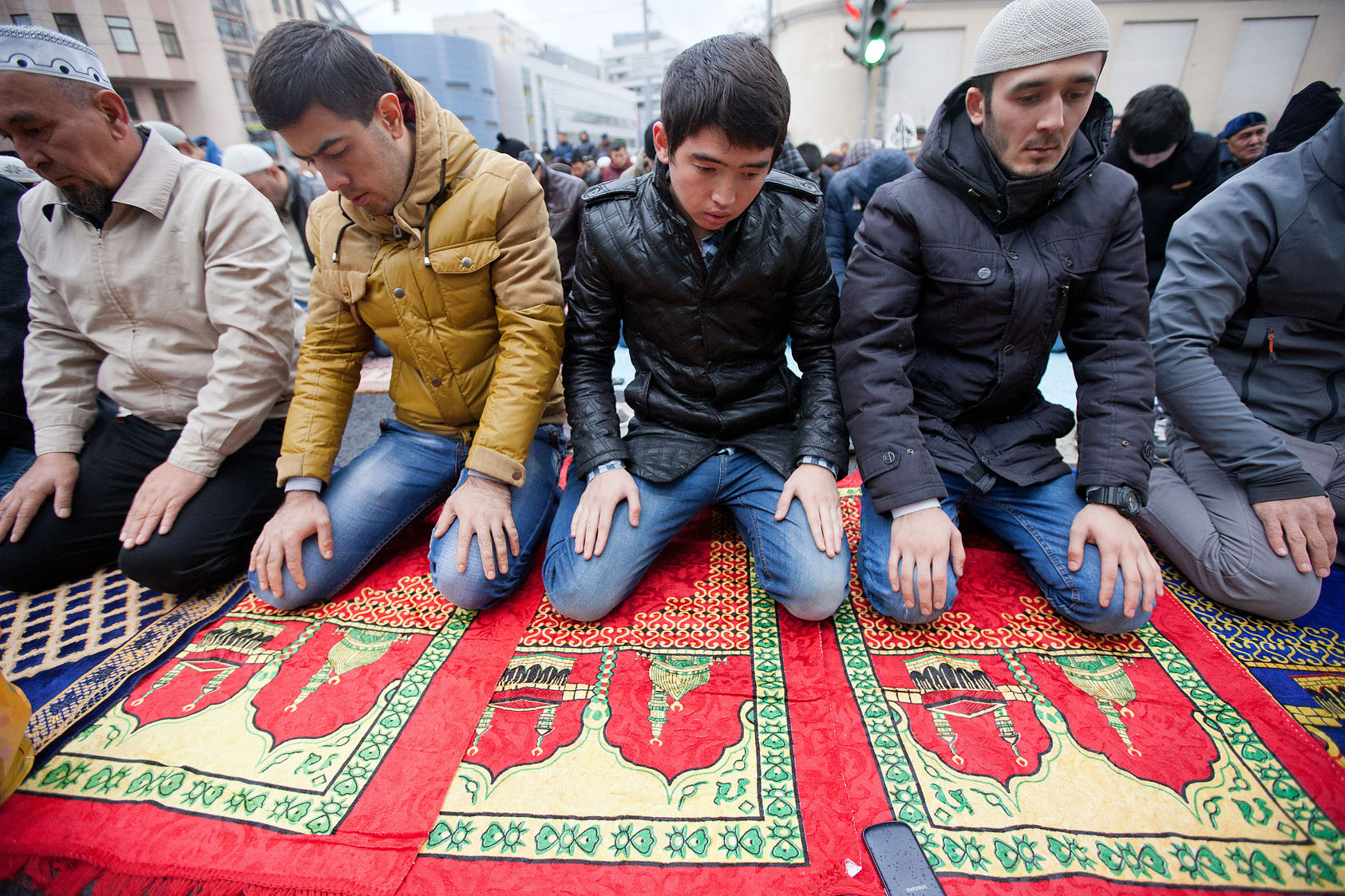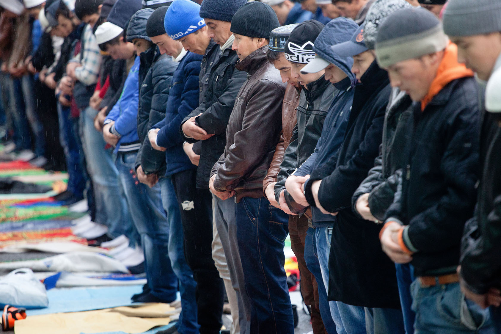 В Москве мусульманский праздник собрал около 130 тысяч человек. Молитвы состоялись в пяти действующих мечетях и на трех дополнительных площадках, выделенных мэрией. Больше всего людей пришли к Соборной мечети - примерно 50 тысяч человек. О том, как это было, - в фоторепортаже Bigpicture.ru