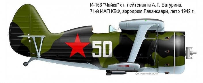 Заместитель командира второй эскадрильи старший лейтенант А.Г. Батурин у истребителя "И-153". © pochta-polevaya