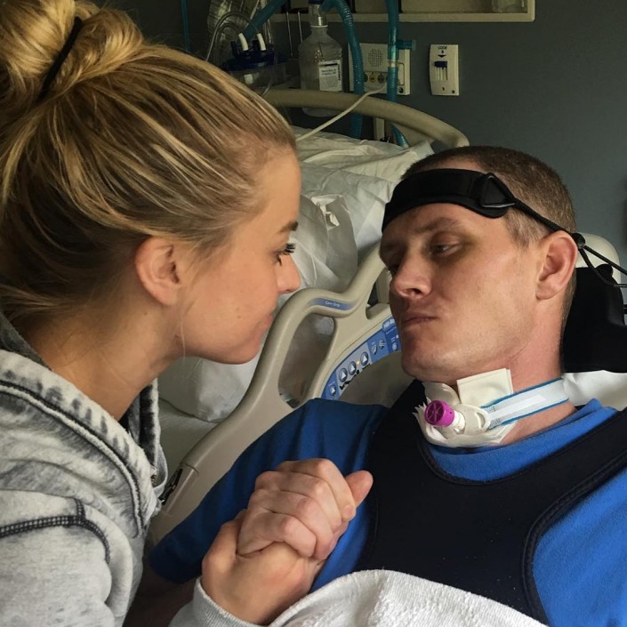 Спустя четыре месяца после физиотерапии Джонатан впервые встал и поцеловал свою жену! Этот трогательный момент засняли на камеру, а чуть позже Лаура выложила видео в Instagram, где за процессом восстановления ее супруга следят 260 тысяч подписчиков.