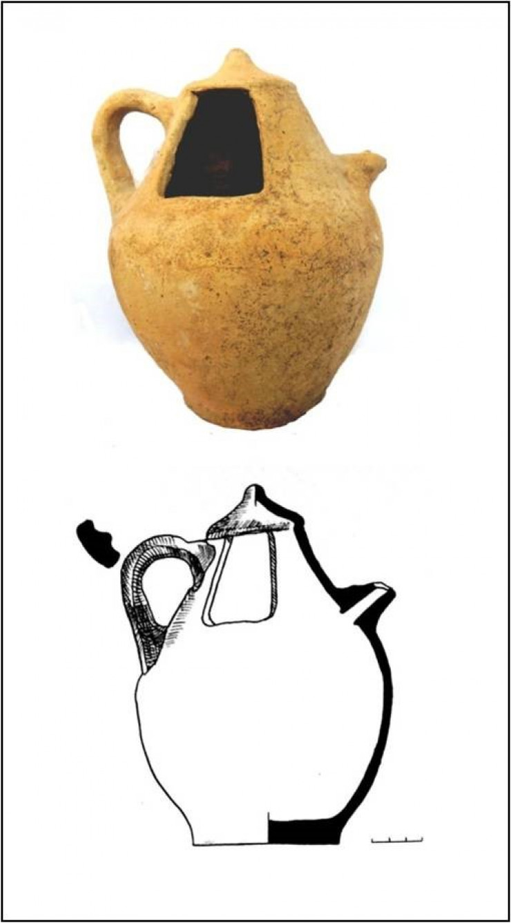 Интерес археологов вызвали также остатки керамического кувшина грушевидной формы с изображением капюшона кобры и креста. По словам археологов, кобра символизирует изначальную инстинктивную природу, прилив жизненной силы и потенциальную энергию, воодушевляющий дух. Это посредник между небом и землей, между землей и подземным миром. Змея ассоциируется с небом, землей, водой и в особенности с Космическим Деревом. В древности со змеей связывали идею непрерывности жизни, постоянного ее "оживления" после смерти на примере сбрасывания кожи, идею бессмертия и неиссякаемого плодородия.