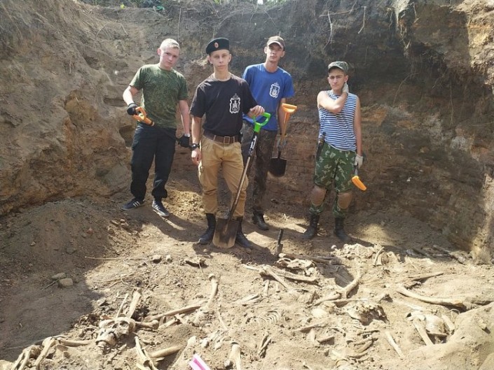 Поисковики проверили информацию и обнаружили массовое захоронение, где покоится более 160 человек. Возможно, захоронение сделано жителями.