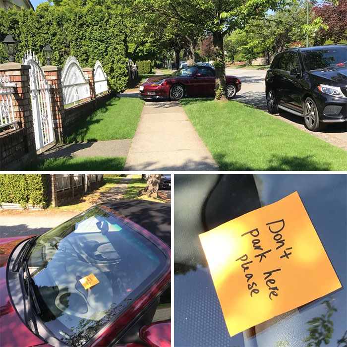 А вот пример дорожных разборок по-канадски. "Не паркуйтесь здесь, пожалуйста", - указано в записке на лобовом стекле.