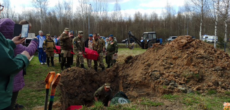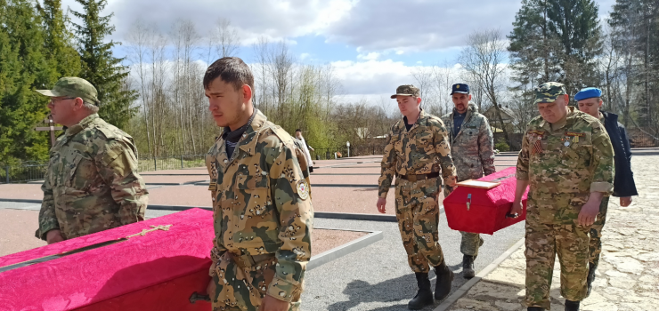 Церемония прошла 4​ мая на воинском мемориале в поселке Первомайский Новгородской области. Вместе с останками казахстанца здесь перезахоронили еще 48 солдат, найденных осенью прошлого и весной этого года во время Вахты памяти. Их обнаружили и эксгумировали бойцы российских отрядов "Пирамида", "Юность" и казахстанского "Поколение" из Степногорска. Сейчас поисковики разыскивают родных Джендарбека Султанова.