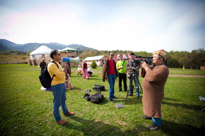 На съемках социального ролика "Конь - крылья джигита", Алматинская область
