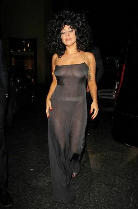 Королева эпатажа Lady Gaga в своем репертуаре. Полупрозрачная ткань платья не скрывала от взглядов окружающих ее женские прелести.