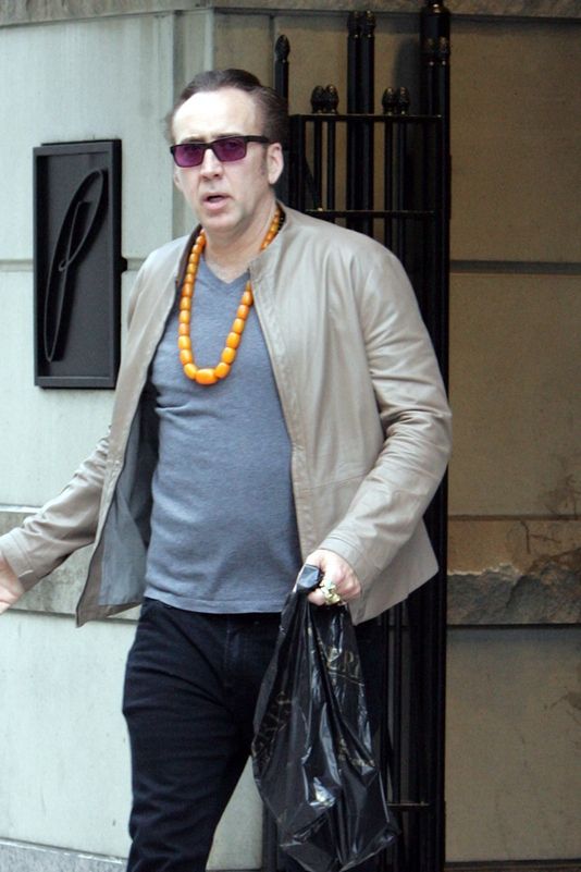 50-летний оскароносный актер Николас Кейдж удивил своим нетипичным подходом к выбору аксессуаров - у него на шее были оранжевые бусы, которые, безусловно, оживили его облик.