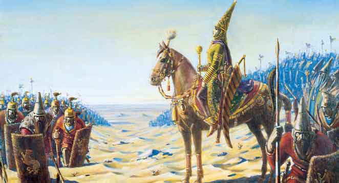 Примерно в 530-529 годах до нашей эры на территорию сакского племени вторгся царь Мидии Кир. Персидские войска наступление начали с Сырдарьи, где-то между Отраром и Туркестаном. Саками тогда правила царица Томирис, вдова принца племени тиграхаудов Рустама. По одной из версий, Кир, в надежде получить руку Томирис и таким образом объединить два народа в одну страну, отправил посла. Но гордая царица ответила отказом. "Томирис не испугалась, как это можно было бы ожидать от женщины, вражеского вторжения", - писал о ней римский историк Помпей Трог.