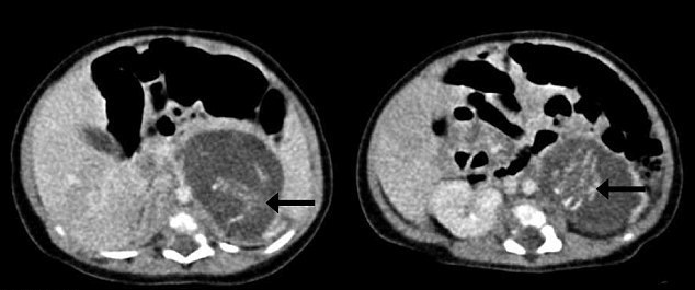 Еще до появления ребенка на свет было проведено ультразвуковое обследование, выявившее в брюшной полости девочки некий объект, заинтересовавший медиков. Поскольку врачи подозревали опухоль, девочку поместили под наблюдение.
