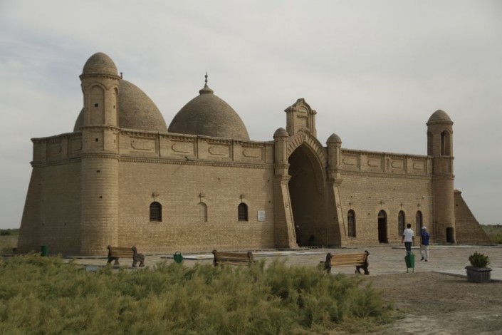 Затем участники фестиваля двинулись к мавзолею Арыстан-Баба. По преданию, святой Арыстан-Баб был духовным наставником и учителем Ахмета Яссауи.