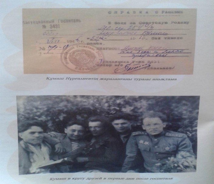 Кумаш Нургалиев не любил вспоминать о войне, но память о ней ни на секунду не гасла в его сердце. Он говорил: "Как увижу, что по телевизору начинается военный фильм, ухожу в другую комнату. И в клубе фильмы, где в бой идут танки, а солдаты поднимаются в атаку, не могу смотреть. Сразу вспоминаются погибшие друзья, товарищи, и невольно на глазах появляются слезы".