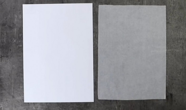 Теперь склеиваем два листа так, чтобы гладкая сторона кальки прилегала к листу бумаги.