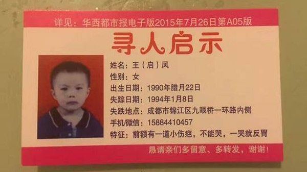 Они обратились в полицию, обклеили объявлениями весь район, но это не помогло. Через некоторое время дело о пропаже ребенка закрыли, но отец не сдавался. На протяжении десятков лет мужчина верил в то, что Ци-Фэнь жива и он сможет ее найти. Минцин напечатал визитки с фотографией трехлетней девочки и ее приметами и продолжал время от времени давать объявления.