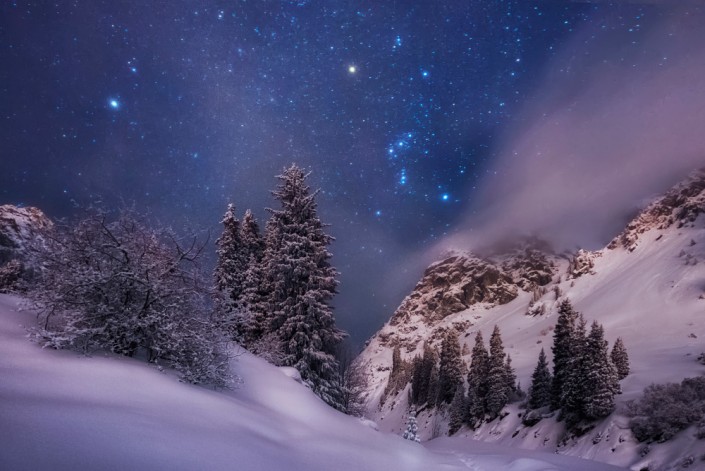 Созвездие Ориона. Малое Алматинское Ущелье, Заилийский Алатау. Февраль, 2017 год. © Ольга Кулакова.