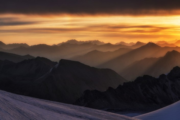 Рассвет на вершине пика Астана (4555 м), ущелье Баянкол, Центральный Тянь-Шань. Август, 2017 год. © Ольга Кулакова.