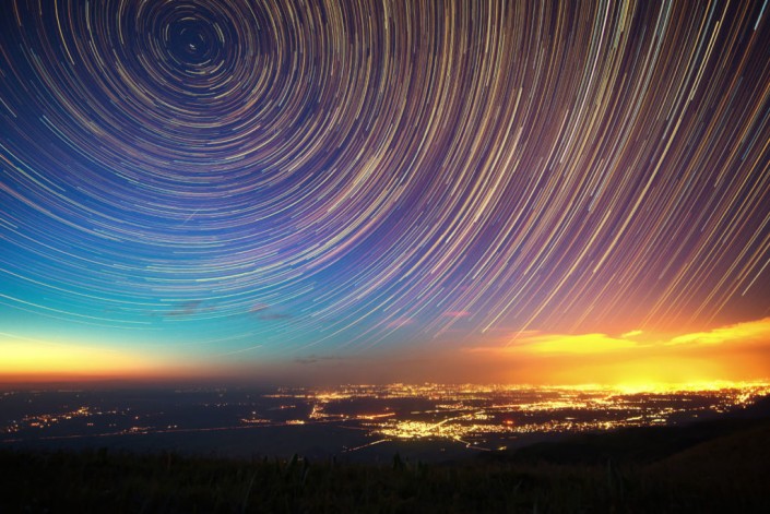 Звездные треки, время выдержки 130 минут. Плато Ушконыр, Алматинская область. Май, 2012 год. © Ольга Кулакова.