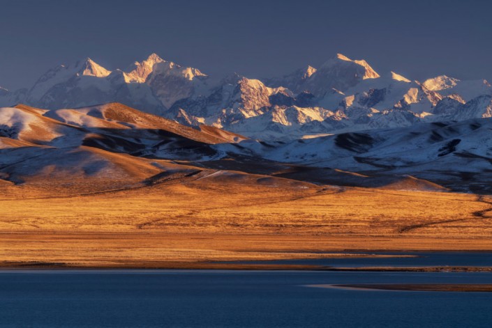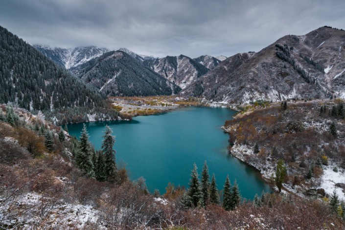 Озеро Тузколь, Алматинская область. Вид на пик Снежного Лотоса (6627 м), Тянь-Шань, Китай. Ноябрь, 2017 год. © Ольга Кулакова.
