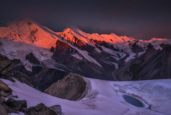 Рассвет на вершине пика Астана (4555м), Ущелье Баянкол, Центральный Тянь-Шань. Август, 2017 год. © Ольга Кулакова.