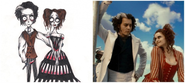 Суини Тодд и Миссис Ловетт из фильма "Суини Тодд, демон-парикмахер с Флит-стрит".