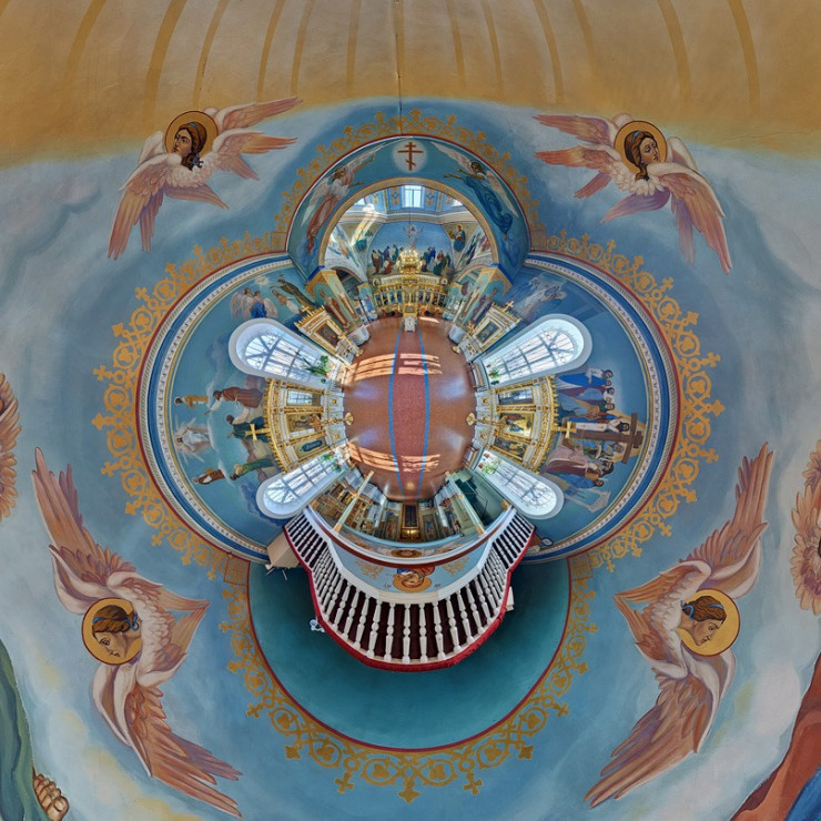 "Снимается 3D-панорама, как в Google Maps, чтобы изображение можно было разглядывать с разных ракурсов, сверху, снизу. Далее панораму заворачиваю в планетку. Для этого есть специальная программа", - поясняет Евгений.