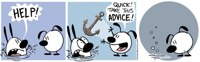 Не стоит давать советы, если люди к ним не готовы. Однажды они могут прийти и сказать, что в их неудачах виноваты вы с вашими советами. Я перестала помогать людям, которые не хотят, чтобы я им помогала. Меньше драм, больше времени на себя.