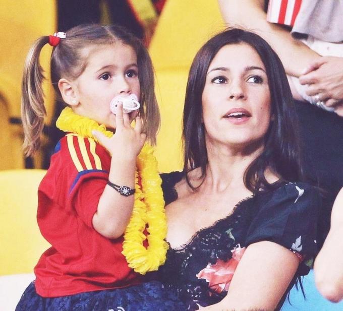 Олалья Домингес, жена нападающего сборной Испании Фернандо Торреса (с дочерью Норой)