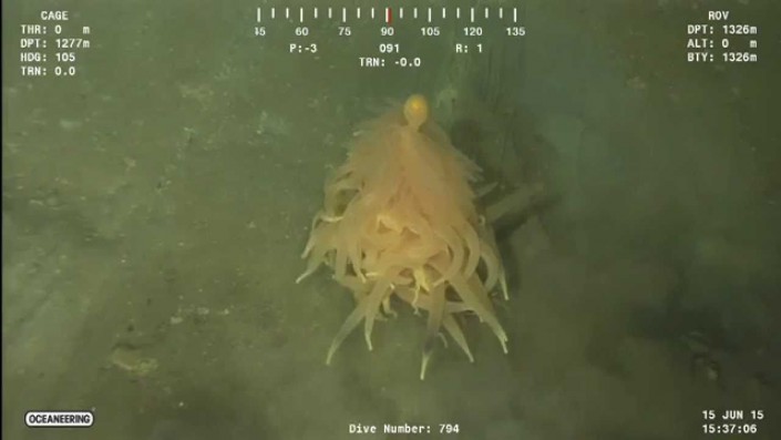 Видео было снято на глубине 1325 метров у побережья Анголы. Попавшее в кадр необычное существо вызывает ассоциации с инопланетными захватчиками из известных голливудских фильмов. Создается впечатление, будто оно состоит в основном из щупалец. На "макушке" морского чудища есть некий источник света.