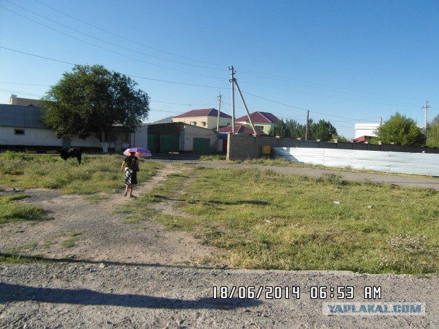 Летом 2014 года я поехал из самого северного города Казахстана на самый юг. Собрался, сел в автомашину и поехал. Не в туристическую поездку, надо было по работе. Если кто не в курсе, Петропавловск - это север, цель - Кызылорда. Разница в природе, климате и образе жизни людей весьма значительная, расстояние около 1500 километров. Раньше так далеко не был, посмотрим, что впереди. Где этот Петропавловск? Про Омск, Курган слышали? Они рядом, оба в 300 километрах. Ну что ж, середина июня. Вернусь в сентябре. Вид из окна дома. В путь.