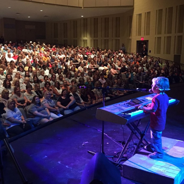 Американца не раз приглашали выступать на различных концертах. Когда юный артист выходит на сцену, видно, как он волнуется. Он в сторонку убирает трость, располагается поудобнее на стуле и начинает петь любимые песни.
