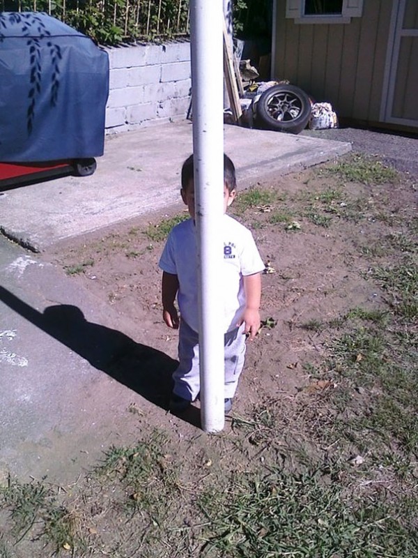 Куда же спрятаться? Пожалуй, этот столб подойдет!
