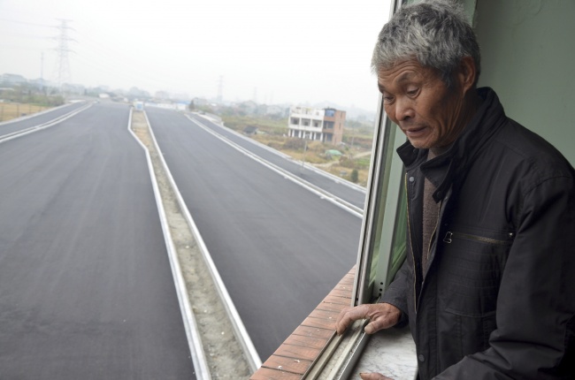 Власти китайской провинции Чжэцзян решили построить через эту деревню шоссе. Но престарелая пара из этого дома уезжать отказалась - по их словам, им предложили слишком маленькую компенсацию, которой не хватило бы на новое жилье. Часть дома снесли, оставив только один подъезд. Люо Баоген и его жена прожили некоторое время при свечах и без воды. Сейчас дом снесли - с упрямцами удалось договориться.