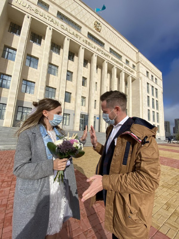 Журналисты Иван и Елена из Нур-Султана знают друг друга уже больше пяти лет. Они сначала были друзьями, какое-то время вместе работали в одной редакции. А в прошлом году их отношения переросли в роман, и пара стала планировать свадьбу. Для этого они выбрали красивую дату 20.03.2020 и подали заявление на регистрацию брака. Однако коронавирус изменил их планы.